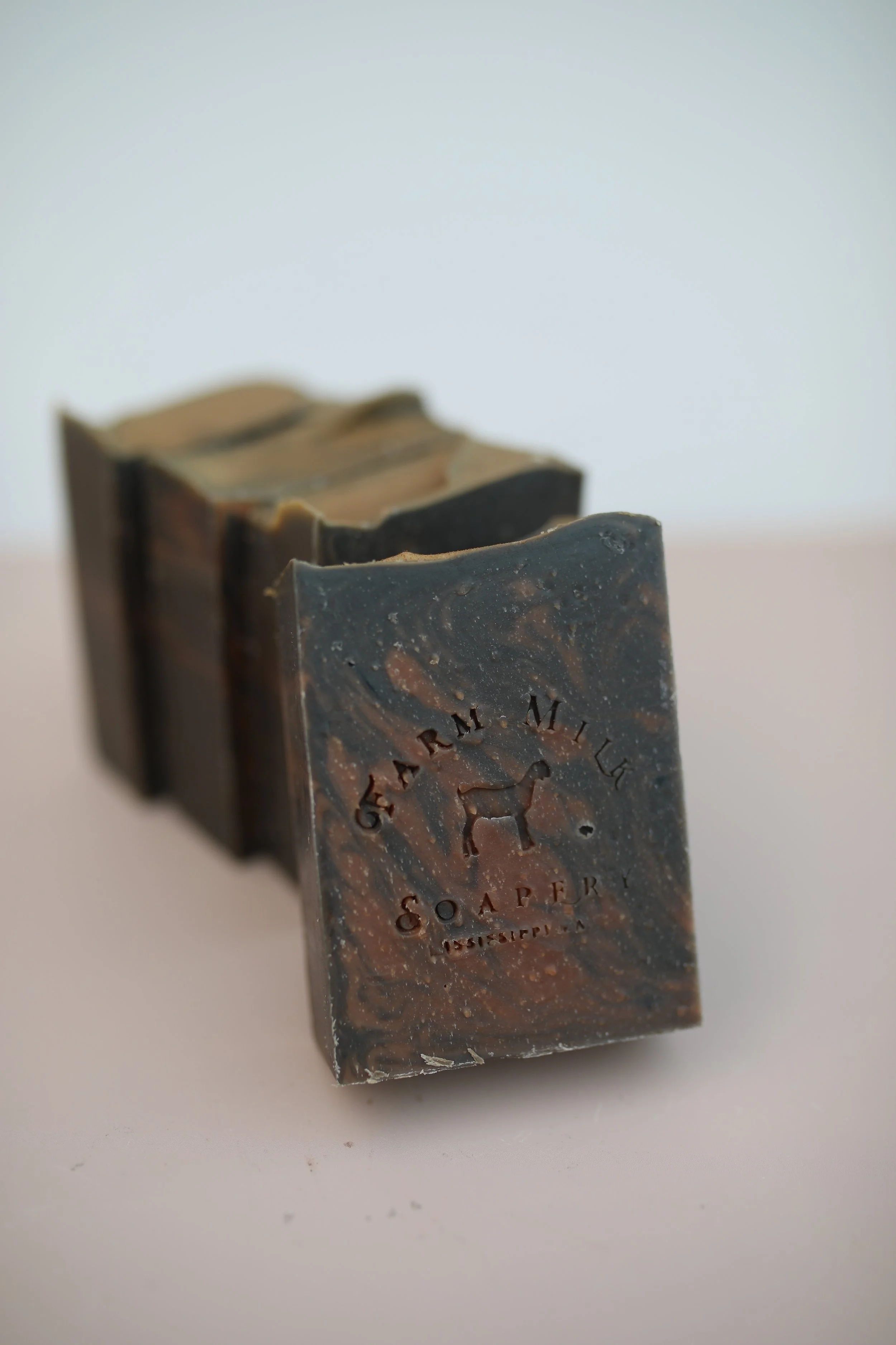 Handmade goat milk soap bath bar scented with musky notes of evergreen, crisp juniper berries, & patchouli. Our soaps are made with natural, moisturizing oils and farm fresh goat milk.
